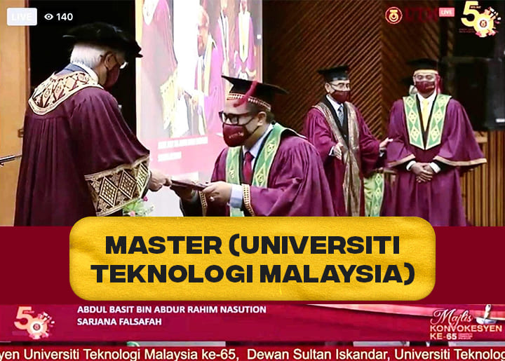 Master (Islamic Civilization) di Universiti Teknologi Malaysia pada tahun 2021.